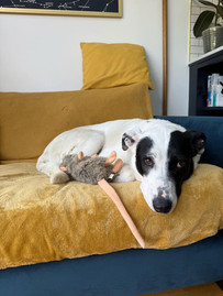 The way he seems with the resident dogs I think another confident dog in the home will help. He is very independent however, once the other dogs were with me he just moved off to where he felt comfortable. In the garden he showed no prey drive to any birds on the lawn. A quiet home to begin with - not too many visitors although I feel with some work this will absolutely be possible” 💞