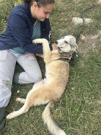 Being a typical pup, he loves to investigate everything, can be a little cheeky and playful. Flint gets on well with other dogs and is quite playful, so could live with other dogs following slow introductions. He has not yet been introduced to cats or children, but this can be arranged upon request.