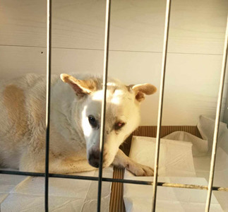 Peach has the most horrendous story ever - attacked by her owner with an axe for eating chickens, she was left with a huge dent in her skull and lost the sight in one of her eyes.