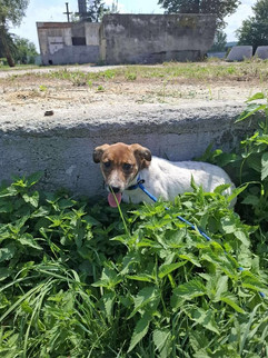 Nell gets on well with dog and enjoys their company, so could live with them following slow introductions and it might benefit her living with a confident resident dog to show her the ropes. She likes to play and explore when outside and goes well on a lead. Nell has not met children or cats yet, but can do upon request.