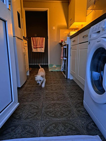 Snowy is happy meeting everyone people and animals. He toilet trained and an easy housemate. He sleeps well overnight, he isn't destructive and is okay left for 3 hours during the day. He's good when out for walks though he can be wary at times in busy places. He's been great meeting new dogs when out anfld about 💙